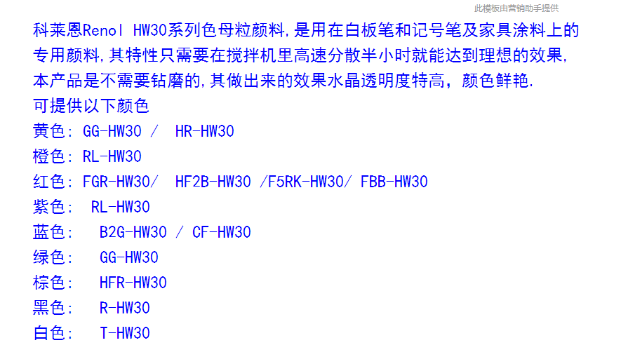 科莱恩Renol HW30 白板笔颜料 PVB色片 色母粒颜料