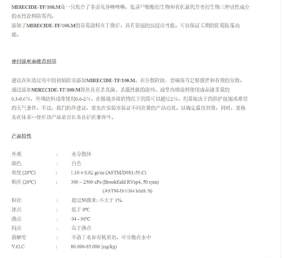 澳润拉玛萨防霉剂MIRECIDE-TF/100.M