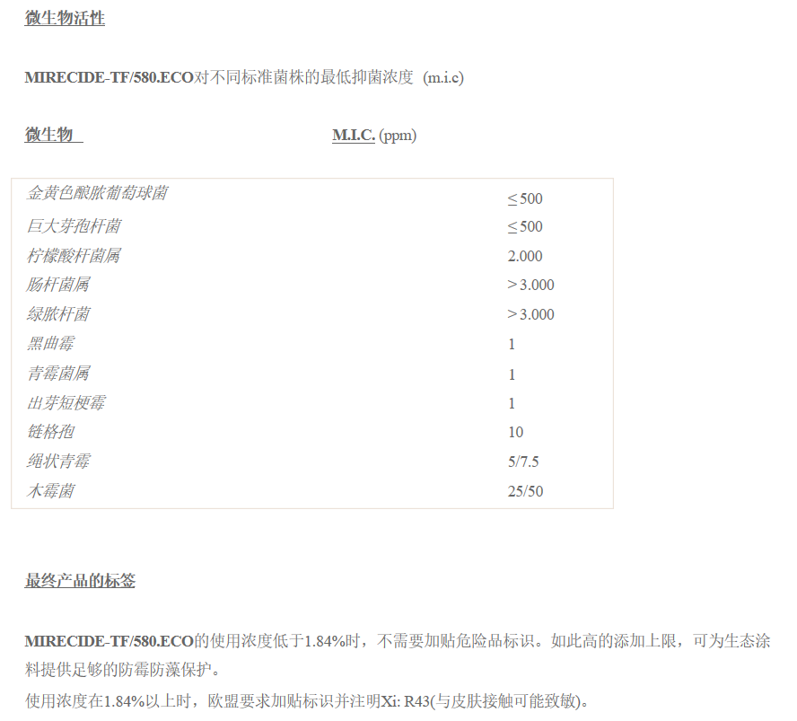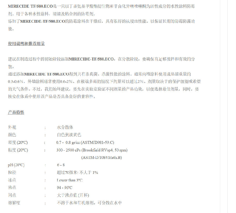 澳润拉玛萨防霉剂MIRECIDE-TF/580.ECO