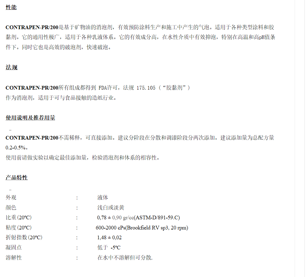 澳润拉玛萨消泡剂CONTRAPEN-PR/200