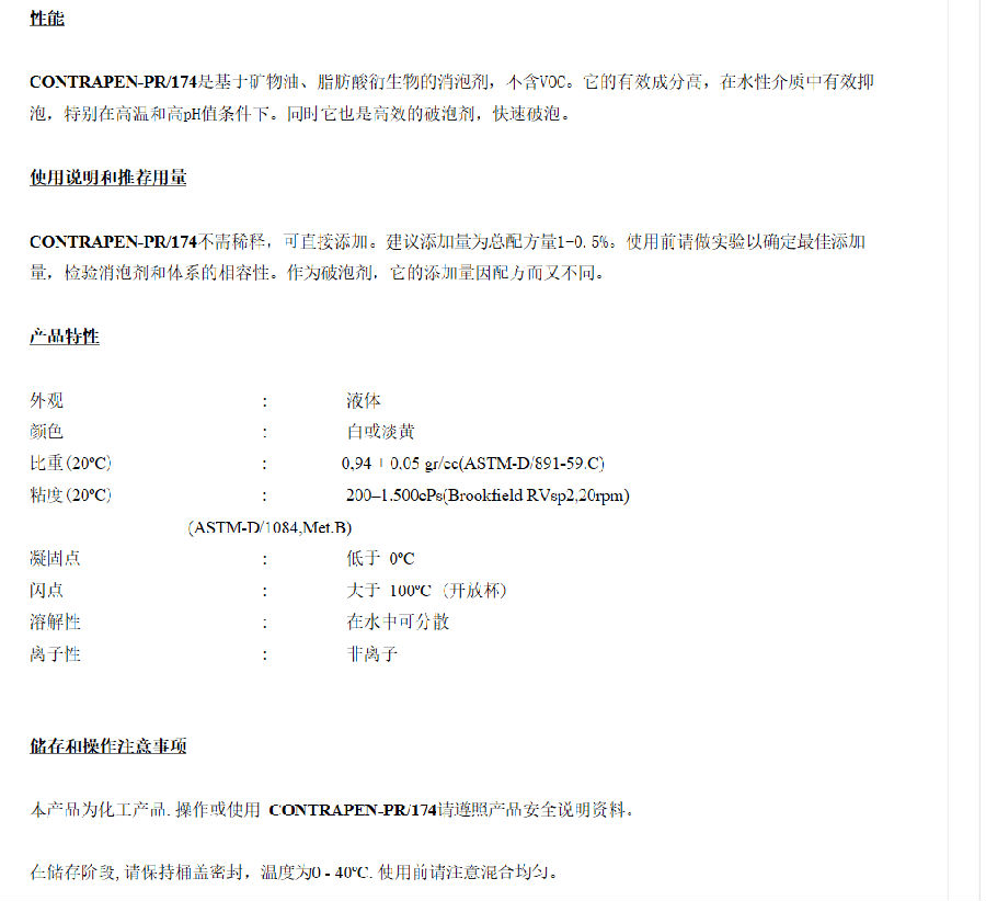 澳润拉玛萨消泡剂CONTRAPEN-PR/174