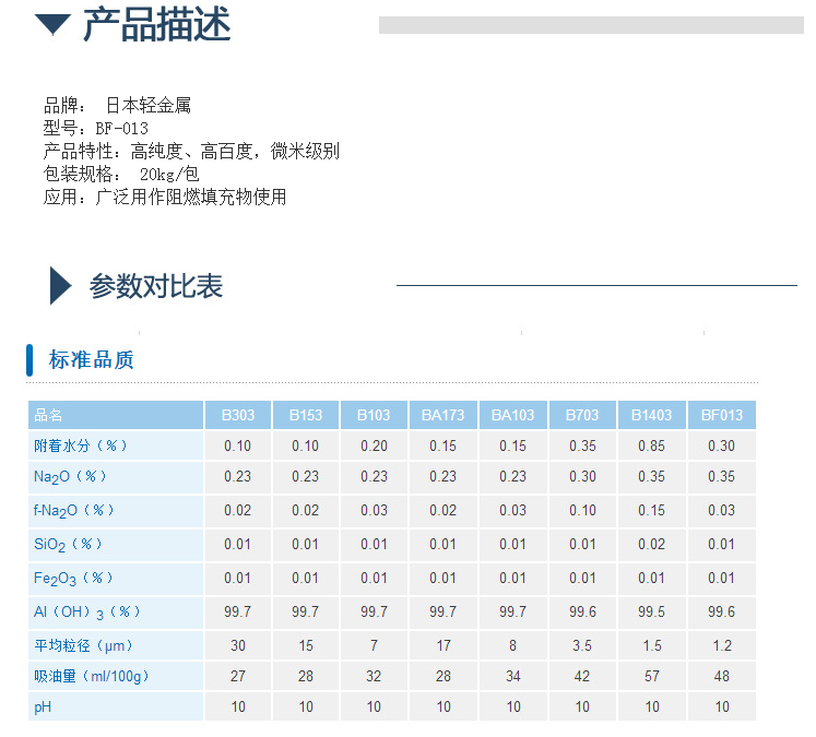 日本轻金属株会原装进&口 阻燃填充物氢氧化铝BF-.013