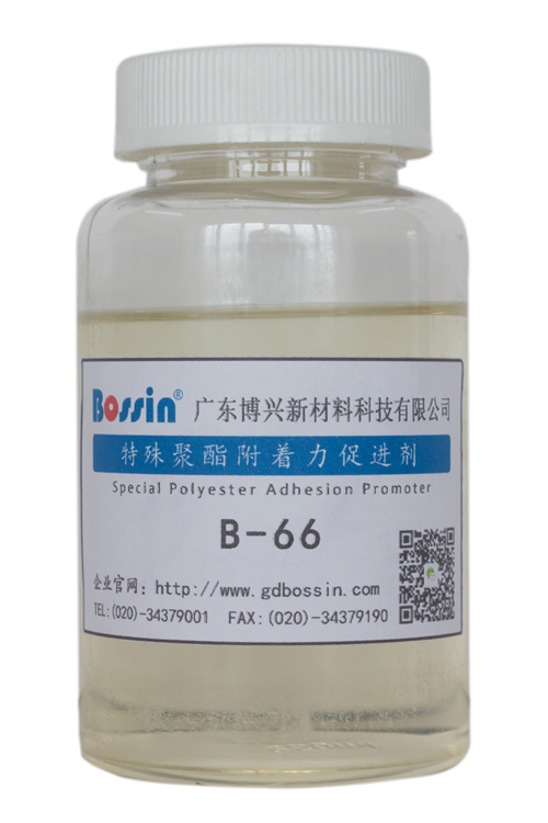 B-66是特殊改性聚酯附着力促进高硬度树脂,B-66在水中的溶胀性非常小;其分子中含有环状特殊结构,因此对极性基材和非极性基材都有良好的附着力。其既硬又韧的特点特别适合用于单组份体系,对改善柔韧性和附着力及层间附着力有特殊效果,尤其是在单组份无卤体系需要配套UV面漆中效果最佳;由于它含有部分羟基,在PU体系中也可添加使用。在烤漆体系中也可以增加附着力和改善光泽。适量添加B-66还可以改善固化后漆膜的耐水煮、耐盐雾和高温高湿及耐手汗性能。