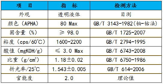 适合于纸张UV光油、塑胶UV光油、木器UV涂料及UV油墨等。
