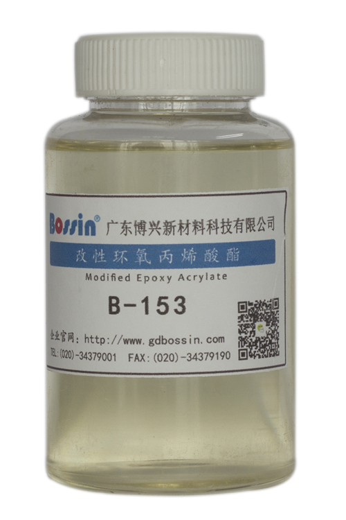 B-153是脂肪酸改性双酚A型环氧丙烯酸酯,与由普通环氧丙烯酸酯(EPA)相比,其柔顺性、伸长率和抗冲击性有显著提高,同时保持了环氧树脂的极性刚性结构,对ABS、PC/ABS、纸张、木材有良好附着力。总体来讲,B-153兼具EPA和PUA的双重特性,比EPA的固化体积收缩率、固化速率和表面硬度低,比PUA的韧性、拉伸强度和固化速率高,可以做到非常理想的柔而韧的漆膜。