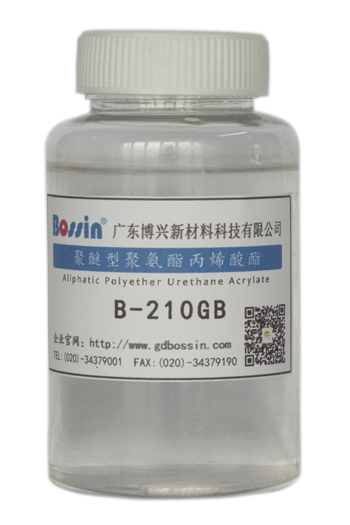 B-210GB是一支大分子量低官能度聚氨酯丙烯酸酯,UV固化收缩小,放热量小。该树脂含有高柔韧性结构,固化膜发粘(单独使用不能全干),成膜物强度低。