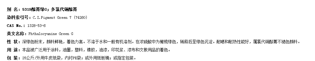 泰阳塑胶通用型酞菁绿G泰阳颜料