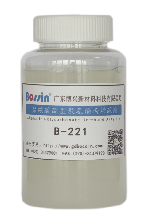 B-221是双官能度PUA树脂,具有优异的耐候性和柔韧性,用于UV塑胶喷涂,可以调节配方的硬度和柔韧性,平衡配方的耐水煮、耐盐雾、耐高低温及冷热循环性能;用于UV印刷光油和油墨,可以作为配方的主体PUA,带来综合的耐溶剂性、柔韧性、耐黄变及较快的UV固化活性。