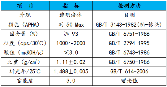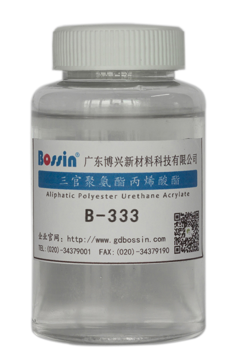 B-333是一种3官能度脂肪族聚氨酯丙烯酸酯,在哑光体系里消光性能佳;树脂粘度低、固含高,特别适合用于哑光辊涂体系。在纸张、木材、PVC、ABS表面有良好密着性;可以与哑粉、单体、其它易消光树脂任意搭配获得更优的哑光效果和表面耐划伤性能;此外该树脂的柔韧性、耐黄变性能、流动性及施工性都很好。