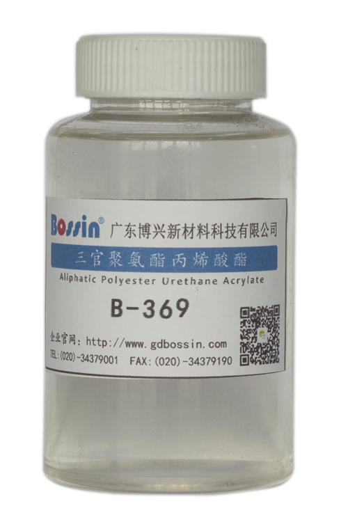 B-369是三官能度脂肪族聚氨酯丙烯酸酯,其脂肪族结构赋予树脂优异的耐黄变性能,具有优异的柔韧性和拉伸强度,在UV固化配方中可以调节配方的硬度和柔韧性,平衡配方的耐水煮、耐盐雾、耐高低温及冷热循环性能。相对于普通两、三官能度聚氨酯丙烯酸酯而言,B-369具有在ABS、PC、ABS/PC、PET、PVC等塑料基材表面最优的附着力。