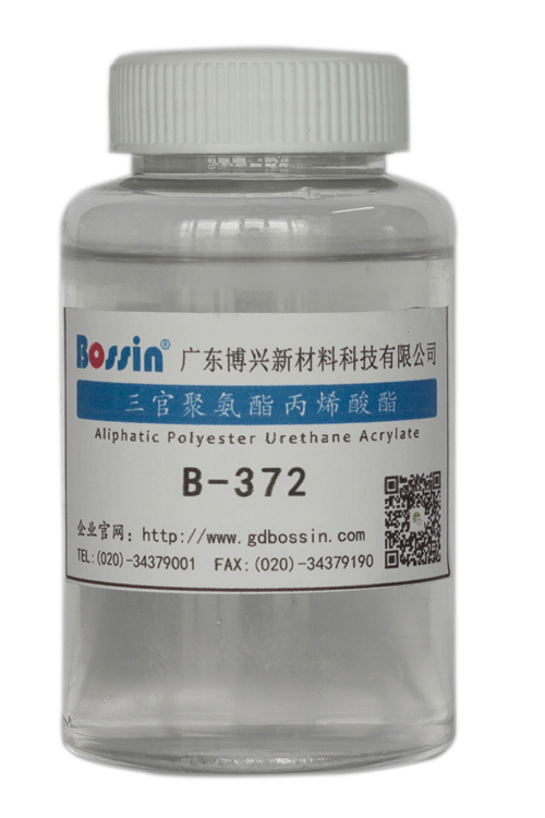B-372是三官能度脂肪族聚氨酯丙烯酸酯,其脂肪族结构赋予树脂优异的耐黄变性能,具有优异的柔韧性和拉伸强度,在UV固化配方中可以调节配方的硬度和柔韧性,平衡配方的耐水煮、耐盐雾、耐高低温及冷热循环性能。