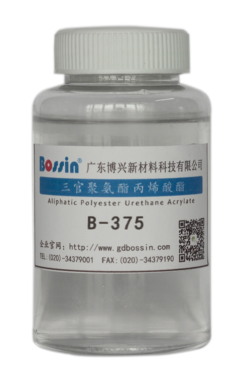 B-375是三官能度脂肪族聚氨酯丙烯酸酯,其脂肪族结构赋予树脂优异的耐黄变性能,具有优异的柔韧性和拉伸强度,在UV固化配方中可以调节配方的硬度和柔韧性,平衡配方的耐水煮、耐盐雾、耐高低温及冷热循环性能。