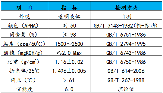 特别适合于各种塑胶及塑胶漆罩光UV涂料、金属UV涂料、真空电镀面漆、PVC表涂光油、木地板和橱柜板上光加硬UV涂料及UV油墨等领域。