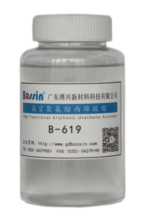 B-619为六官能度脂肪族聚氨酯丙烯酸酯低聚物,具有高UV固化活性,固化涂层具有优异的耐溶剂性、抗擦伤性和耐磨性能,硬度高,耐黄变、耐候性佳。 此外,B-619有比较均衡的硬度和柔韧性,很好的透明度和表面光泽度。对PC、ABS、PMMA、PVC等多种塑胶底材具有优良的附着性能,即使单独使用也可获得良好的附着力。