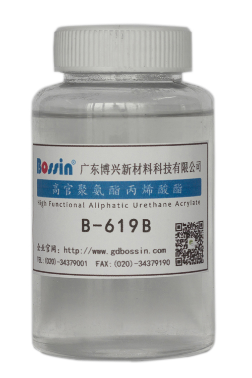 B-619B为六官能度脂肪族聚氨酯丙烯酸酯低聚物,具有高UV固化活性,固化涂层具有优异的耐溶剂性、抗擦伤性和耐磨性能,硬度高,耐黄变、耐候性佳。 此外,B-619B有比较均衡的硬度和柔韧性,很好的透明度和表面光泽度。对PC、ABS、PMMA、PVC等多种塑胶底材具有优良的附着性能,即使单独使用也可获得良好的附着力。