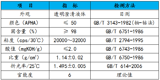 特别适合于各种塑胶及塑胶漆罩光UV涂料、金属UV涂料、真空电镀面漆、PVC表涂光油、木地板和橱柜板上光加硬UV涂料及UV油墨等领域。