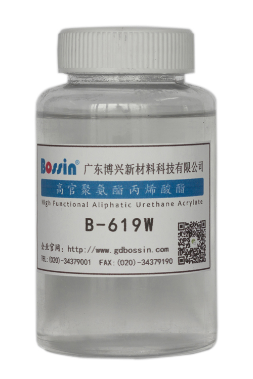 B-619W为六官能度脂肪族聚氨酯丙烯酸酯低聚物,具有高UV固化活性,固化涂层具有优异的耐溶剂性、抗擦伤性和耐磨性能,硬度高,耐黄变、耐候性佳。 此外,B-619W有比较均衡的硬度和柔韧性,很好的透明度和表面光泽度。对PC、ABS、PMMA、PVC等多种塑胶底材具有优良的附着性能,即使单独使用也可获得良好的附着力。