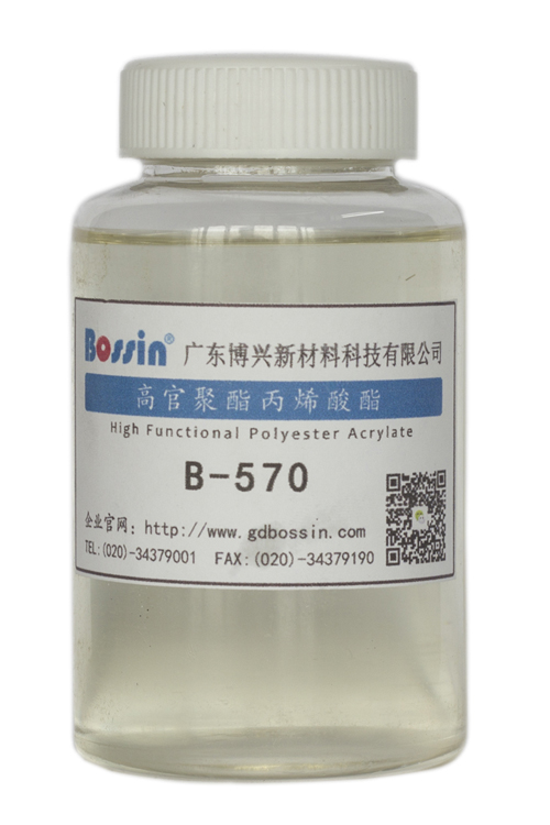 B-570是一种高官能度的聚酯丙烯酸酯,无苯无气味,低粘性,快速固化,与其它树脂相溶性好,对颜料润湿分散性佳。B-570的VOC可满足烟包标准,粘度只是TMPTA的5~8倍,韧性比TMPTA好很多,固化硬度高于DI-TMPTA,曝光能量低于DPHA,100mJ/cm2的UV能量可以使50微米膜厚一次全干。