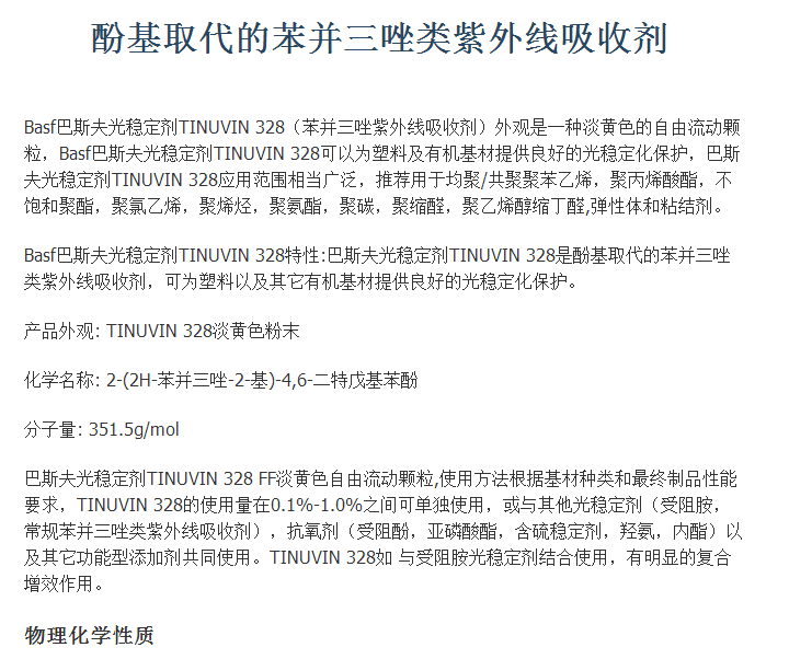 巴斯夫(BASF)紫外线吸收剂TINUVIN 328