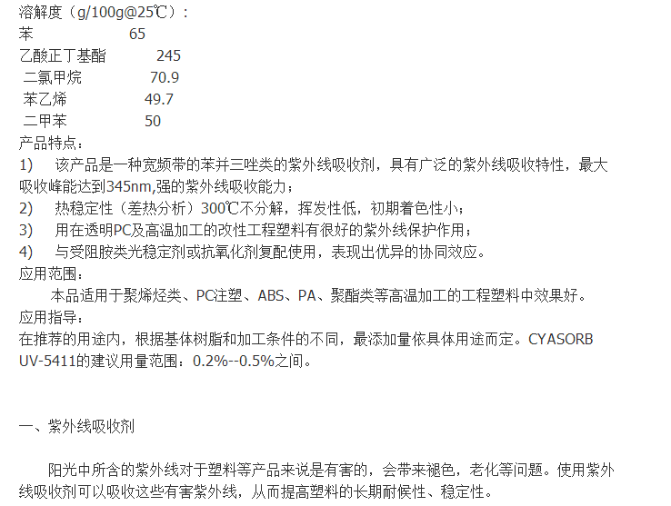 氰特紫外线吸收剂UV-5411 美国原装正品