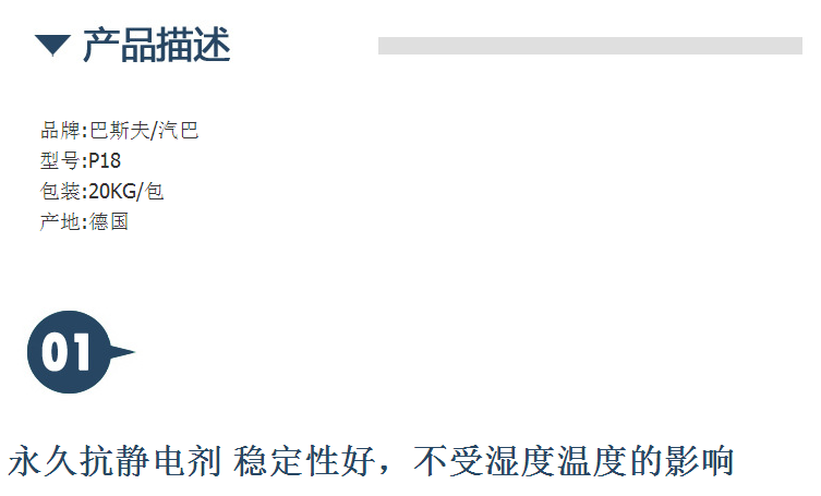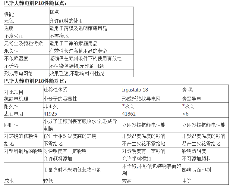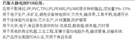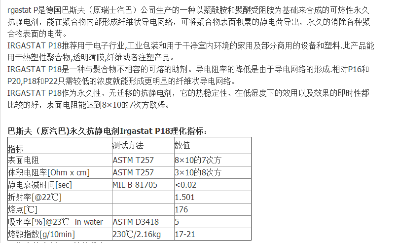 巴斯夫(BASF)(原汽巴)抗静电剂Irgastat P18、无迁移的抗静电剂