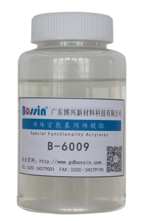 B-6009是特殊合成之丙烯酸酯化丙烯酸树脂,线型结构,大分子量,且每条分子链上接入多个(大于15个)丙烯酸双键,主链玻璃化转变温度约为38℃。本产品中不含丙烯酸单体,溶剂成份是丁酯。本品的特点是高成膜性、高双键密度、高羟值、低粘度。该树脂有一定的自干性,同时带有多个羟基和多个丙烯酸酯基,既可光固化也可PU热固化,适合于UV双重固化体系。