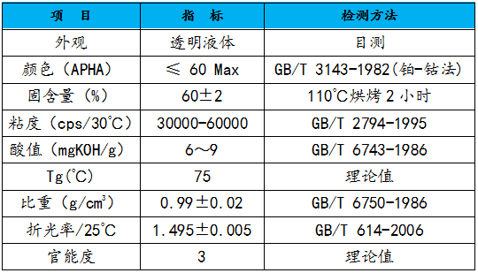 B-6315A是丙烯酸化的丙烯酸树脂,在侧链上面接入了丙烯酸双键,理论每个分子上面接入3-4个双键,主链理论计算玻璃化转变温度为75℃。本产品中不含丙烯酸单体,溶剂成份是二甲苯,110℃烘箱连续烘烤2小时剩余重量不低于60 %。本品的特点是耐水煮、附着力、震动耐磨。