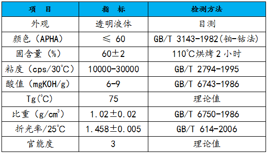 B-6315W是丙烯酸化的丙烯酸树脂,在侧链上面接入了丙烯酸双键,理论每个分子上面接入3-4个双键,主链理论计算玻璃化转变温度为75℃。本产品中不含丙烯酸单体,溶剂成份是二甲苯,110℃烘箱连续烘烤2小时剩余重量不低于60%。本品的特点是耐水煮、附着力、震动耐磨。