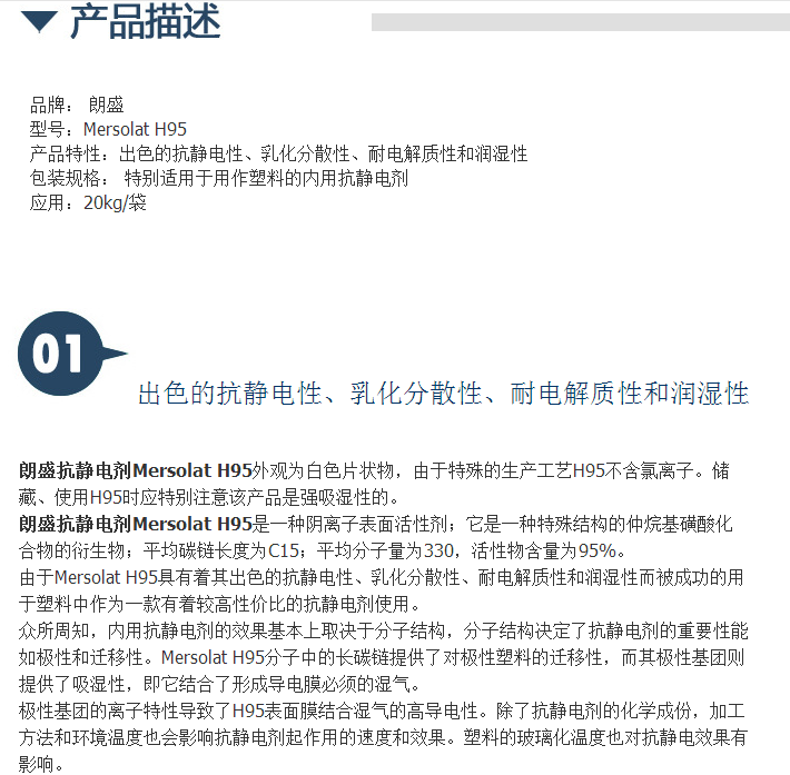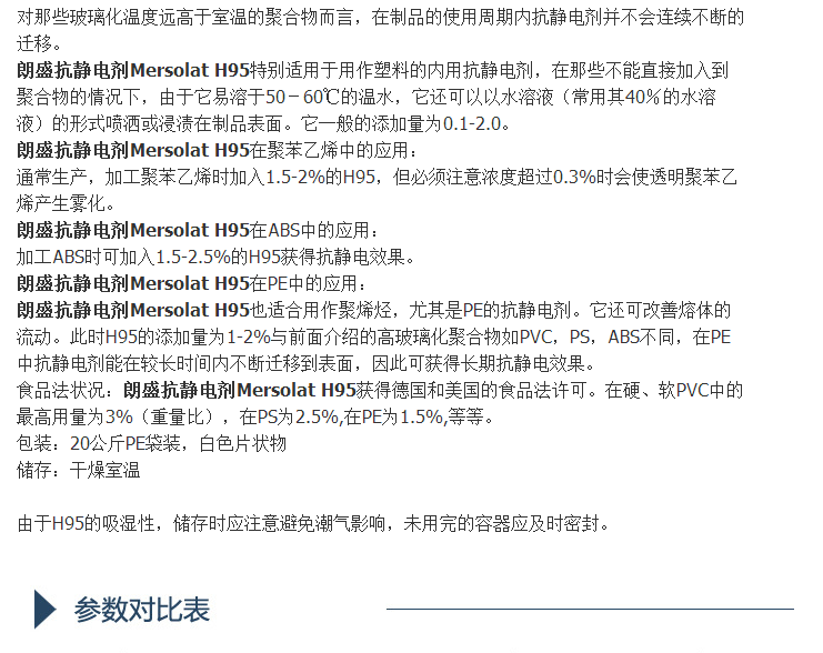 德国朗盛抗静电剂Mersolat H95