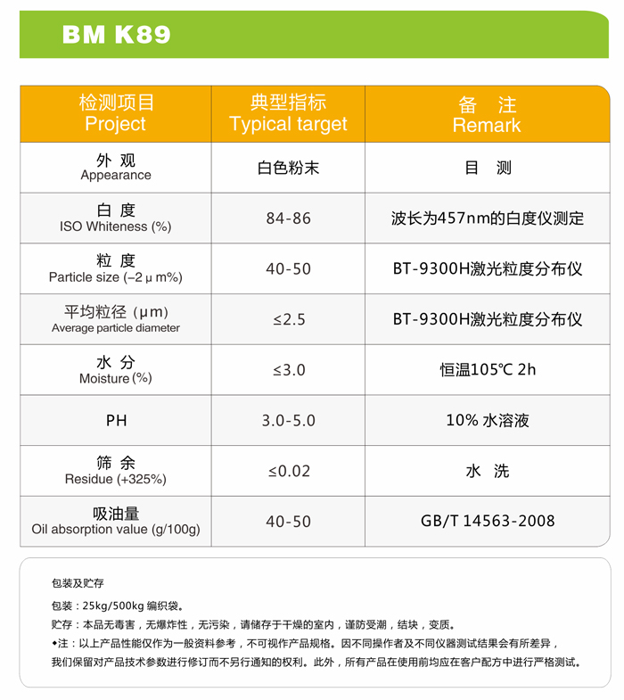 K 系列产品是专为水性涂料生产而设计的具有高白度、良好的遮盖力、平滑度、优异的触变性能、抗沉降性能及附着力优良等优点,能有效地改善涂料的贮存稳定性和抗分水性能,改善颜料的浮色发花和提高颜料的展色性;改善施工抗流挂性,提高漆膜丰满度,增强漆膜手感爽滑性,增强涂膜抗紫外线能力。为水性涂料带来更均衡的性能和更有利的竞争优势,是水性涂料中的体质颜料和多功能添加剂。