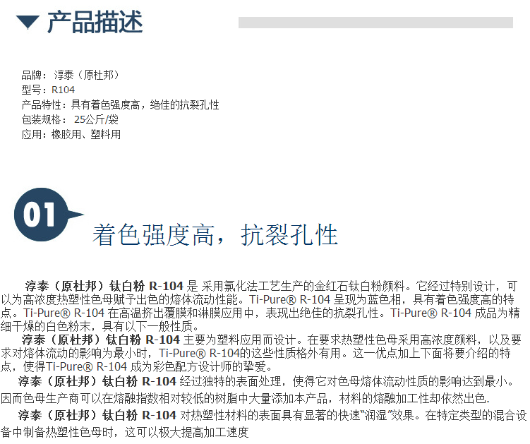 淳泰(原杜邦)钛白粉R104