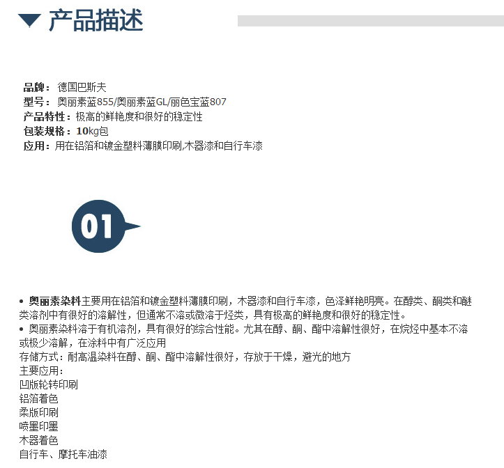 德国巴斯夫金属络合染料奥丽素蓝855汽巴蓝GL