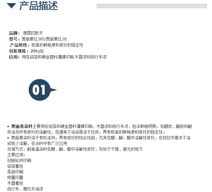 德国巴斯夫(BASF)金属络合染料奥丽素红385汽巴红2B