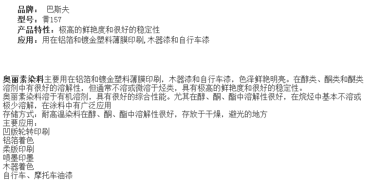 德国巴斯夫(BASF)金属络合染料奥丽素黄157