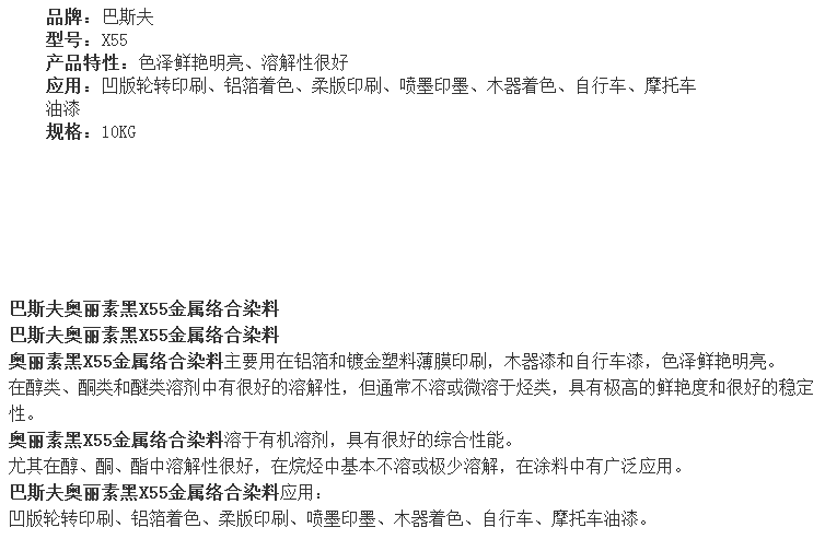 德国巴斯夫(BASF)金属络合染料奥丽素黑X55汽巴黑RLI 1公斤起售