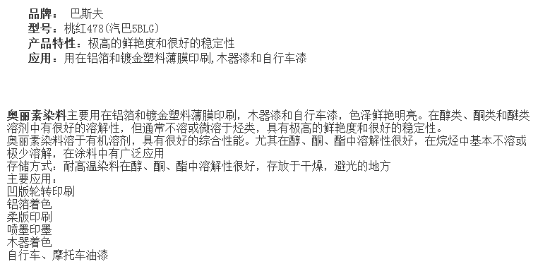 德国巴斯夫BASF金属络合染料奥丽素桃红478汽巴桃红5BLG 1公斤售