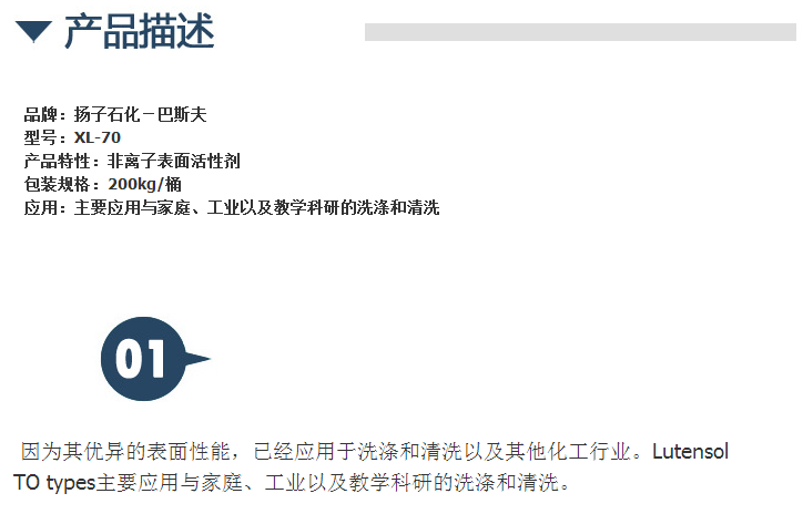 【扬子石化-巴斯夫】非离子表面活性剂 XL-70 工业级 XL-70