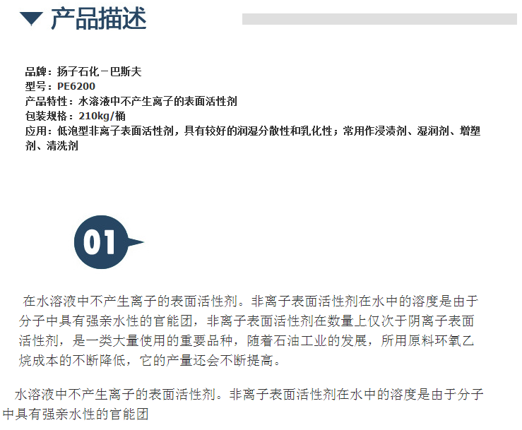【扬子石化-巴斯夫】非离子表面活性剂 PE6200 工业级 PE6200