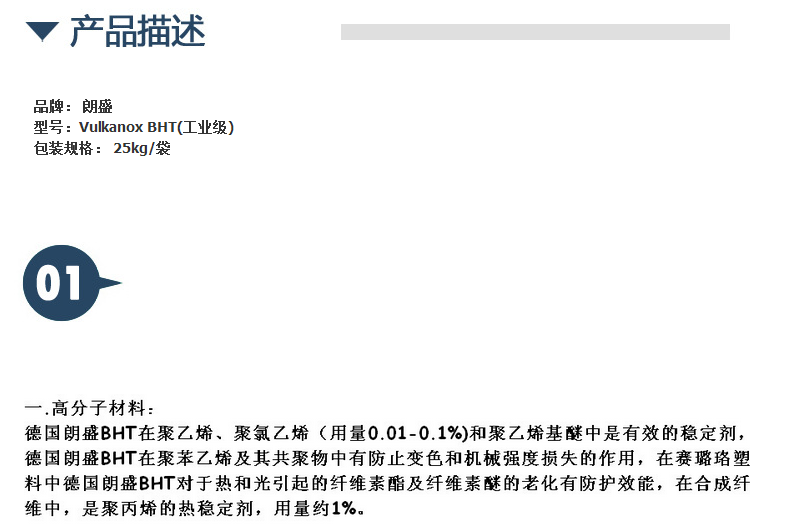 朗盛抗氧剂Vulkanox BHT(工业级)