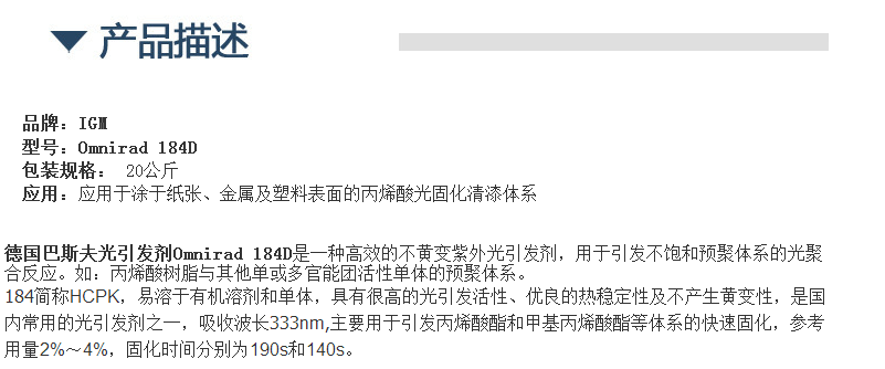 IGM光引发剂184D(原巴斯夫basf IRGACURE 184D)光引发剂184D