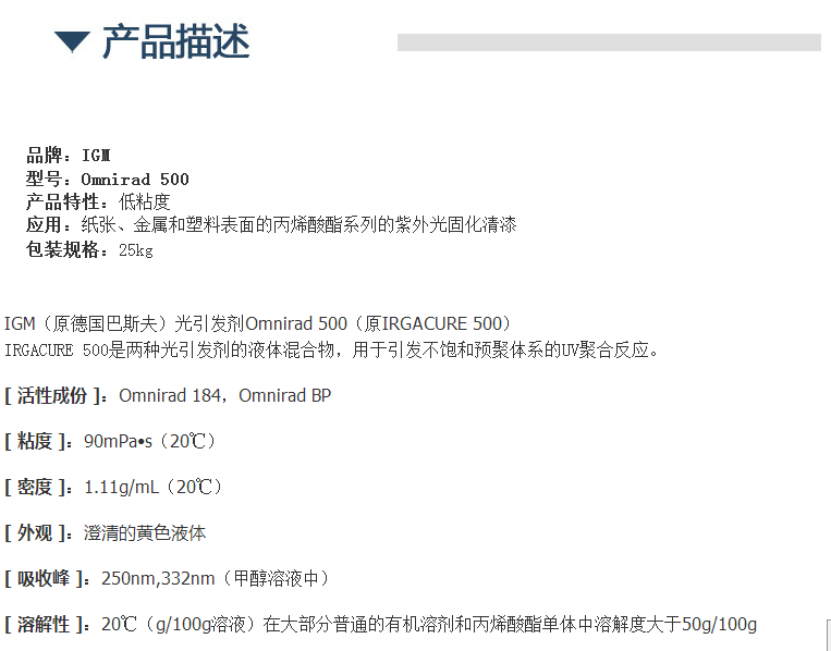 IGM光引发剂 500(原巴斯夫(BASF)IRGACURE 500)光引发剂500