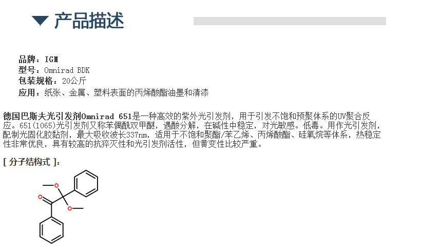 IGM光引发剂 BDK(原巴斯夫(BASF)IRGACURE 651)光引发剂651