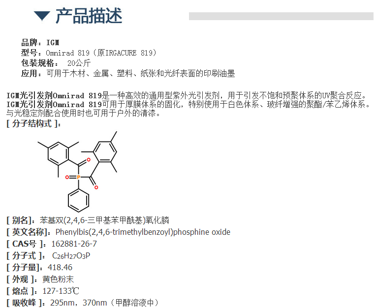 IGM光引发剂819(原巴斯夫(BASF)IRGACURE 819)光引发剂819