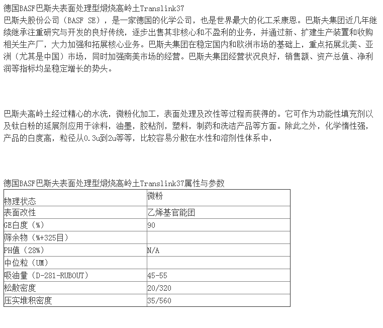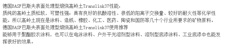 德国BASF巴斯夫表面处理型煅烧高岭土Translink37