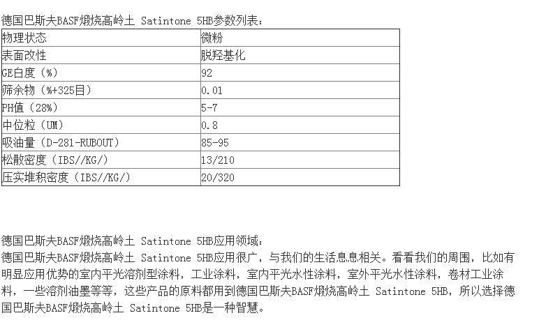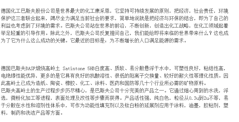 德国巴斯夫BASF煅烧高岭土Satintone 5HB