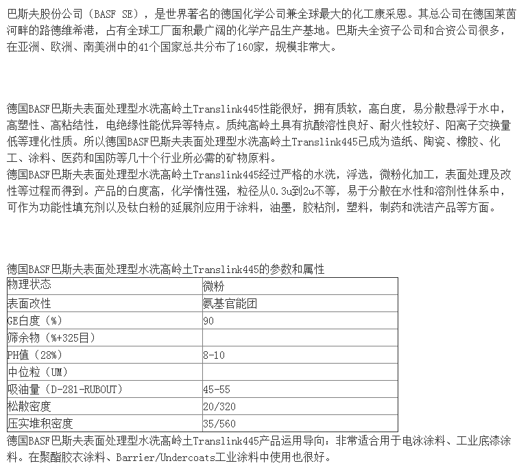 德国BASF巴斯夫表面处理型水洗高岭土Translink445