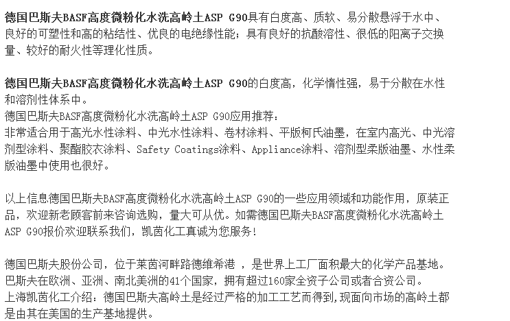 德国巴斯夫(BASF)高度微粉化水洗高岭土ASP G90