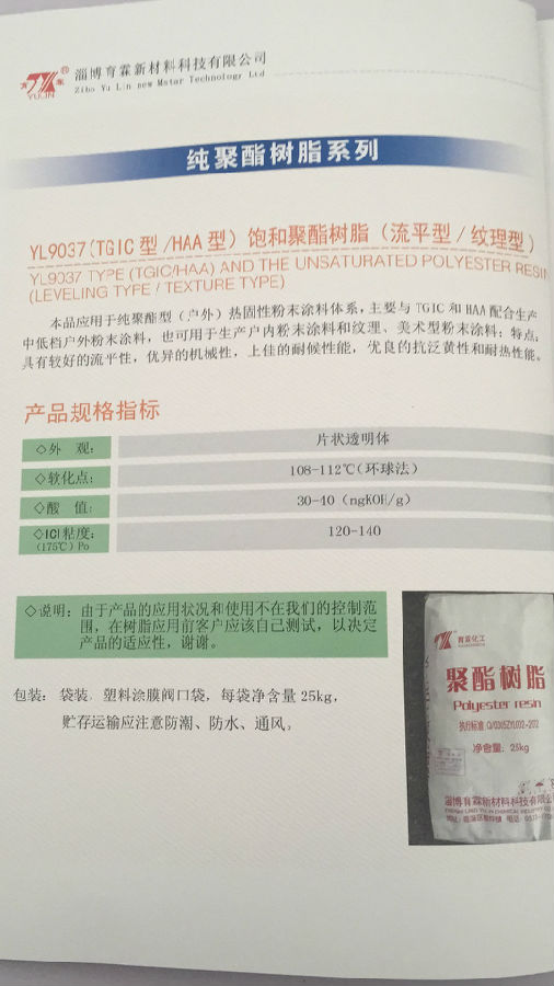 淄博玉霖 YL9037(TGIC型/HAA型)饱和聚酯树脂(平流型/纹理型)