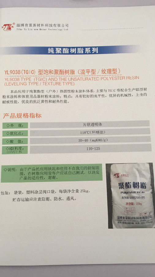 淄博玉霖 YL9038(TGIC型/HAA型)饱和聚酯树脂(平流型/纹理型)