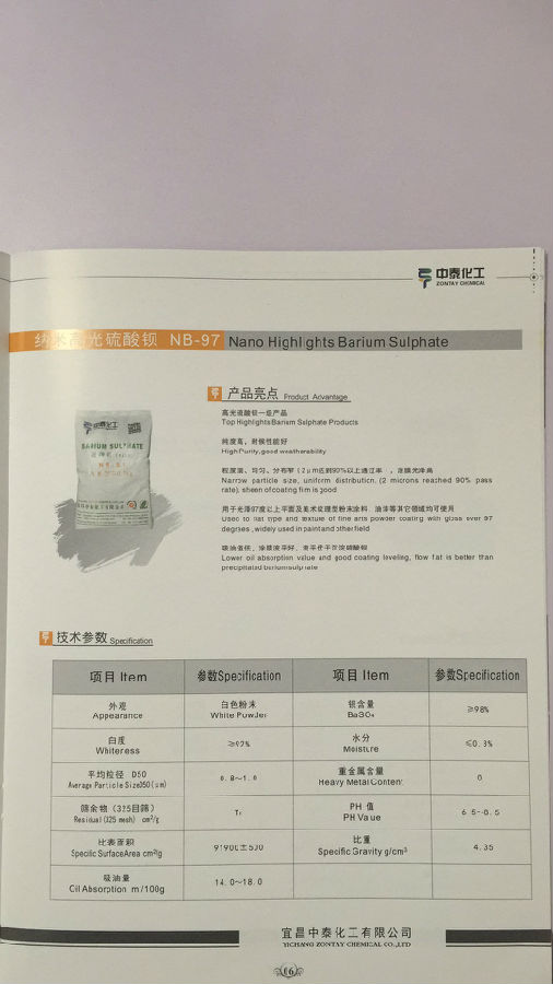 宜昌中泰 纳米高光硫酸钡 NB-97